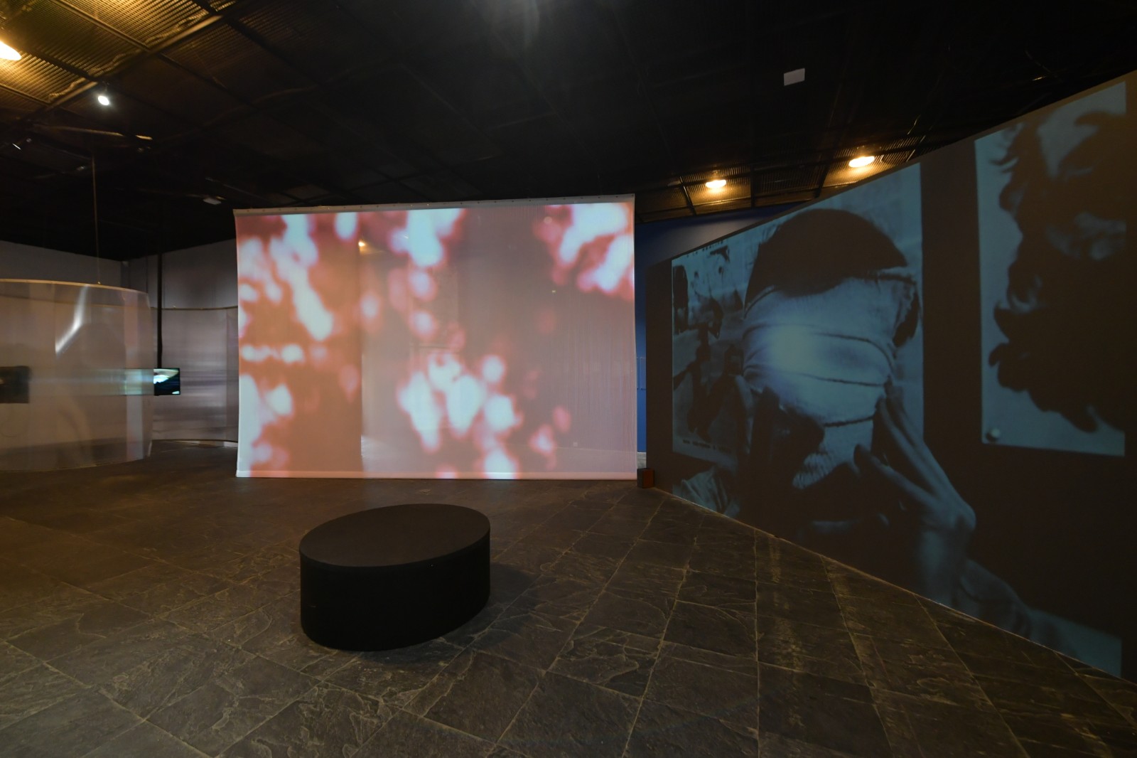 空間與空間的交疊、空間中的空間以作品圖像、檔案重建與場景搭建等形式,散落于展覽的各個角落之中。陳淑瑜在開幕式的視頻致辭中提到:“展覽是關(guān)于藝術(shù)作品看不見的本質(zhì),是我們用藝術(shù)作品可見的實(shí)體部分去建構(gòu)展覽的空間,去容納內(nèi)心不可見的部分。對我來說,這是展覽的意義,也是展覽的開始?!盵8]