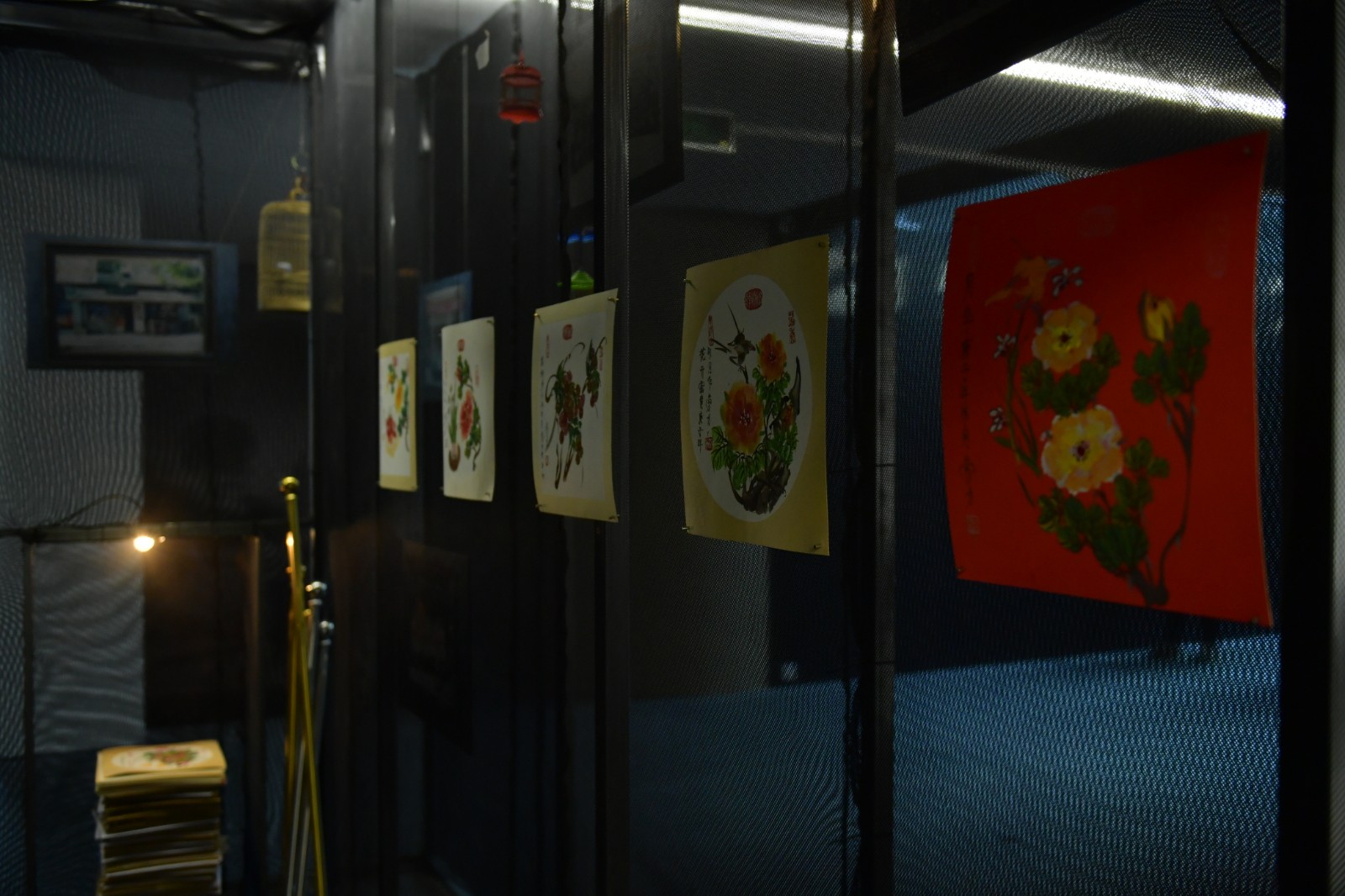 有趣的是,在陳淑瑜與未建筑設(shè)計研究所共同設(shè)計的“迷宮”裝置中,陳淑瑜以策展的方式又介入了耶丁的這段創(chuàng)作經(jīng)歷中。進(jìn)入暗室中的迷宮,觀眾沿著旋轉(zhuǎn)的樓梯向上前行,一路遇到的老照片,帶有時代氣息的畫作,被置于凹陷空間深處的視頻,以及需要置身于“洞穴”中去傾聽的獨(dú)白,都昭示著一種極強(qiáng)的私密性,在不見光亮的迷宮中,人們在狹窄而形態(tài)怪誕的通道中甚至無法錯開身來,被迫與他人“分享”私密。