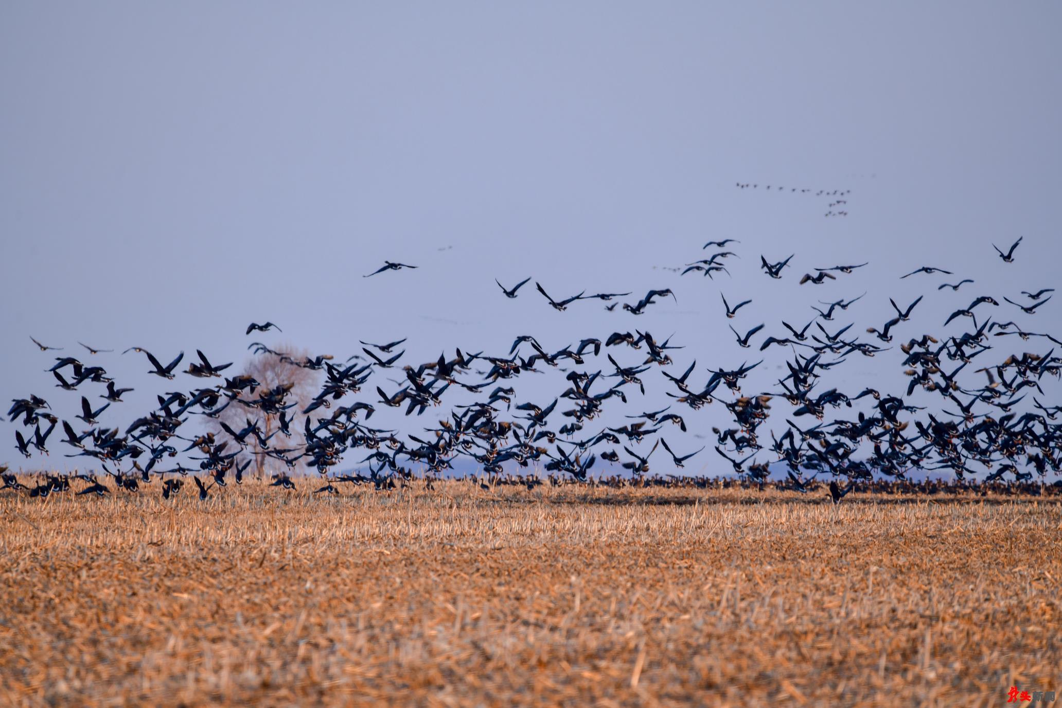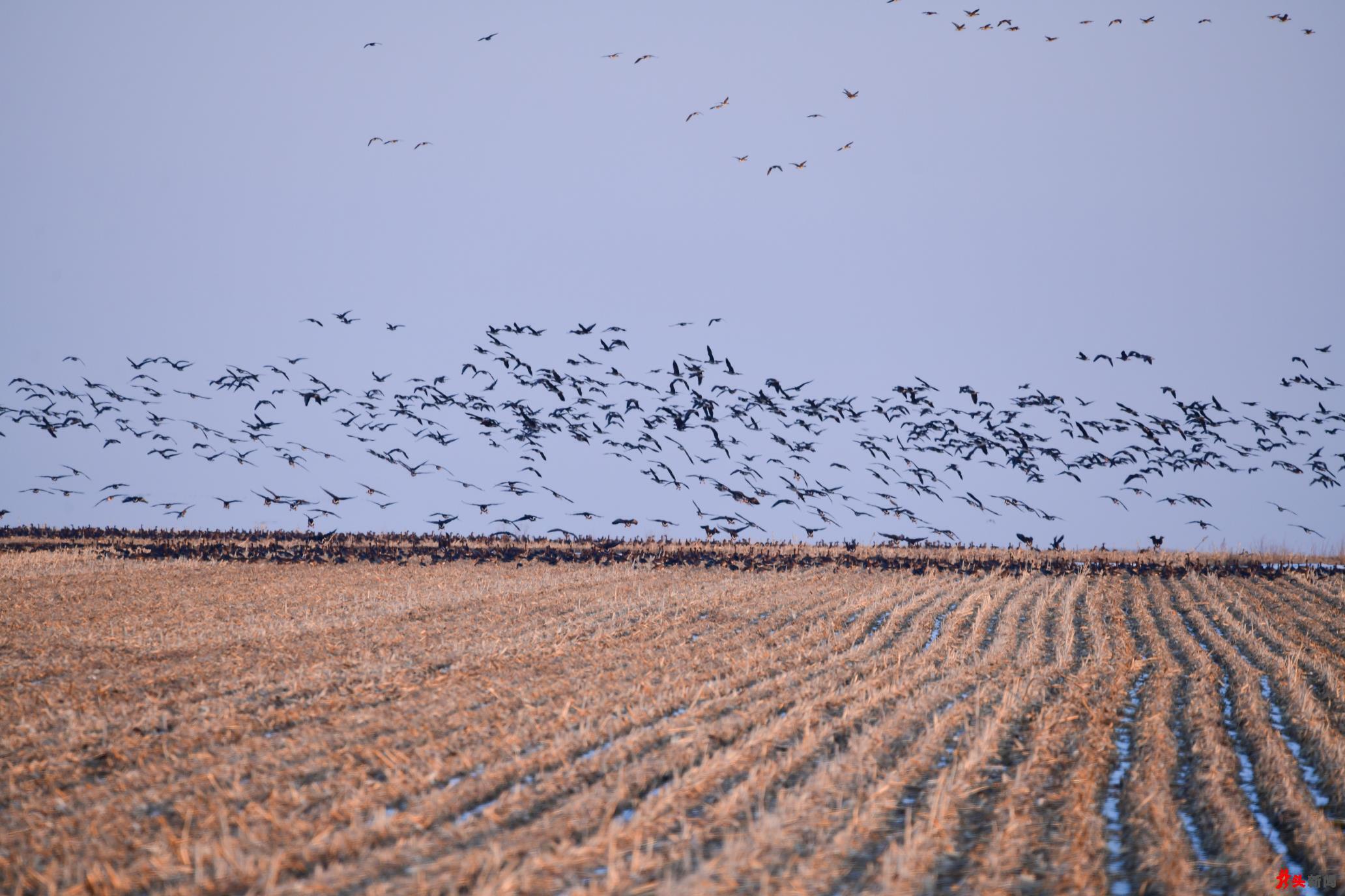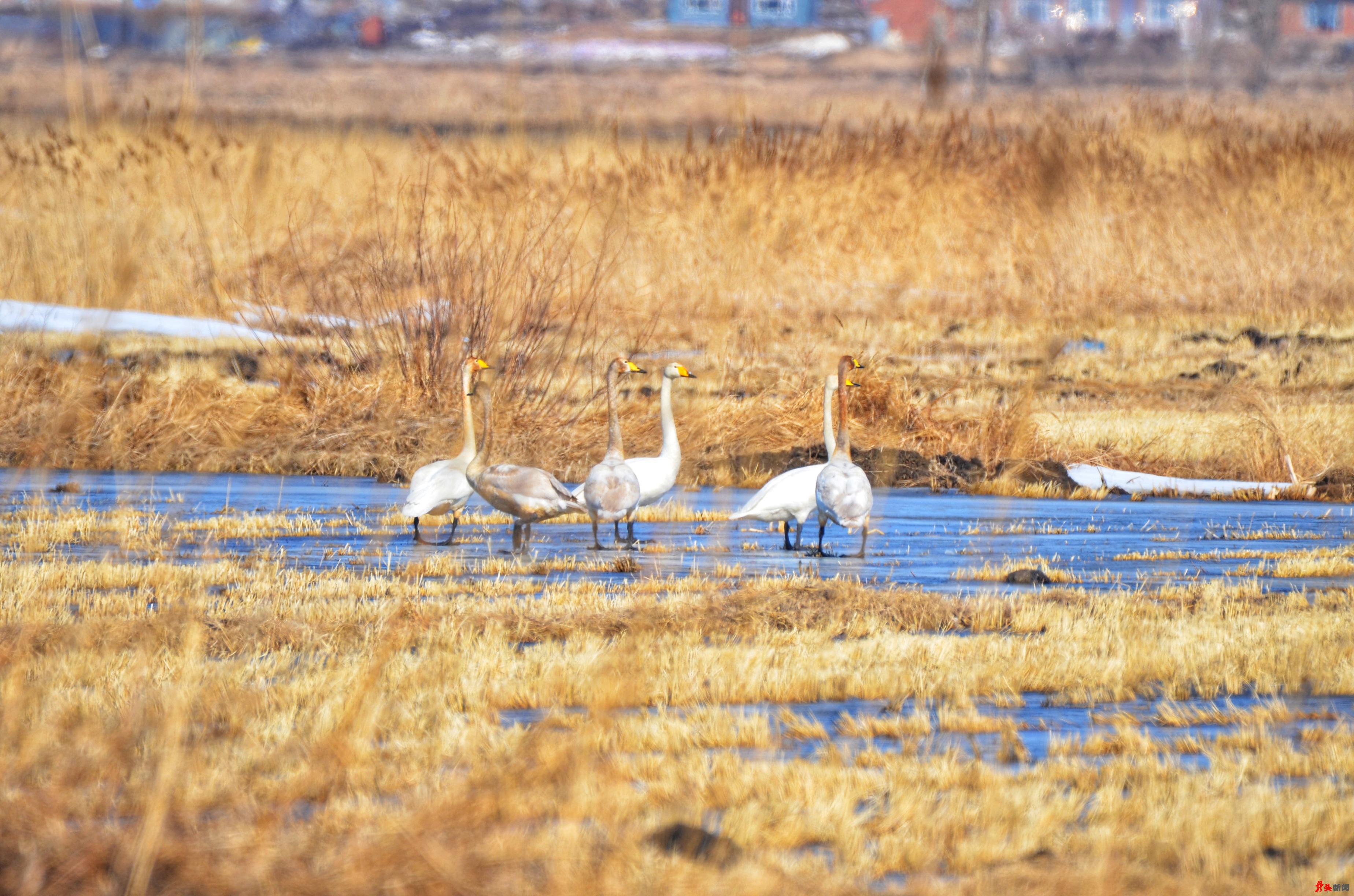 候鳥們有的聚集在剛剛化凍的湖邊,有的聚集在興凱湖閘門流水口附近的活水中,更多的則群集在興凱湖附近的水田地或沼澤地里。