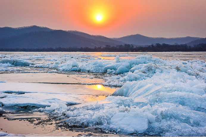 在烏蘇里江的源頭虎頭欣賞開江壯景,別有一番風(fēng)味??傻巧蟻辛⒃诮系臇|方第一塔,遠眺俄羅斯對岸,居高而下,欣賞烏蘇里江冰層炸裂、冰排涌動的全景,聆聽冰排漂流撞擊發(fā)出的陣陣聲響。