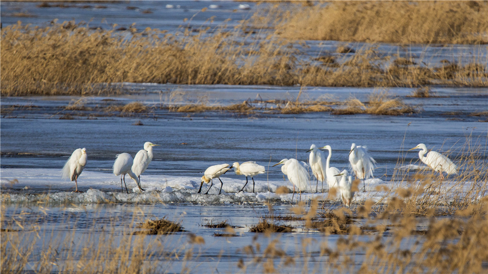 寶清縣七星河國家級(jí)自然保護(hù)區(qū)和東升自然保護(hù)區(qū)日前迎來了首批候鳥回歸。數(shù)萬只雁類及白琵鷺、丹頂鶴、東方白鸛等候鳥飛臨保護(hù)區(qū)停歇休養(yǎng),它們時(shí)而起舞歡歌,時(shí)而低頭覓食,為保護(hù)區(qū)增添了無限生機(jī)與活力。