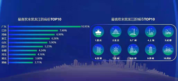 黑龍江省依托資源優(yōu)勢,發(fā)揮政府和市場作用,充分調動群眾參與的積極性。大數據顯示,好風光不只是龍江人在用視頻記錄,來自全國一線省份、城市的游客也喜歡來黑龍江旅游,其中,游客以冬季游、四季游等標簽,被黑龍江的好風光實力“圈”粉。根據數據,2020年在抖音平臺,最喜歡來黑龍江的省份統(tǒng)計,排在前十的省份是廣東、江蘇、河南、浙江、山東、四川、安徽、河北、湖北、湖南。