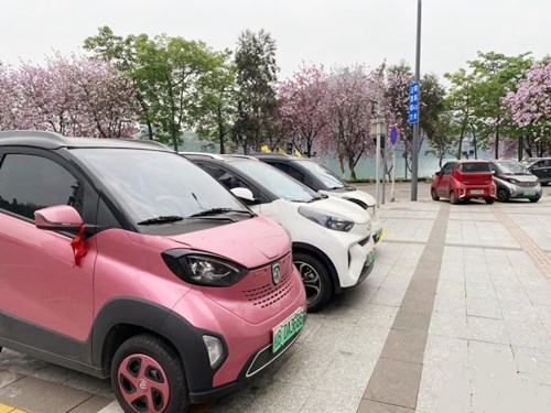 在柳州市區(qū)街道上,精致小巧的新能源汽車隨處可見。 周瀟男 攝
