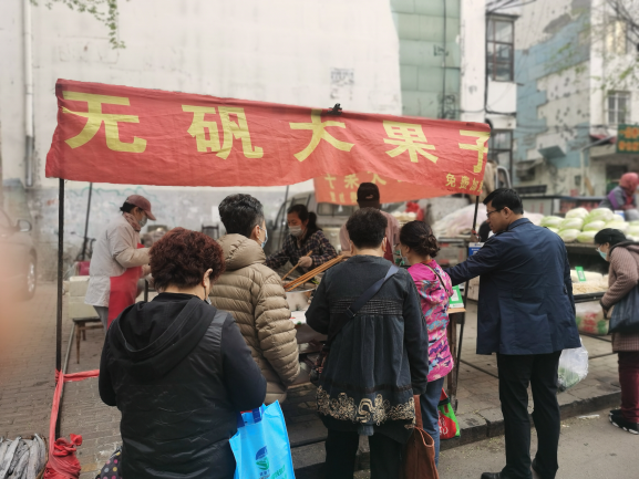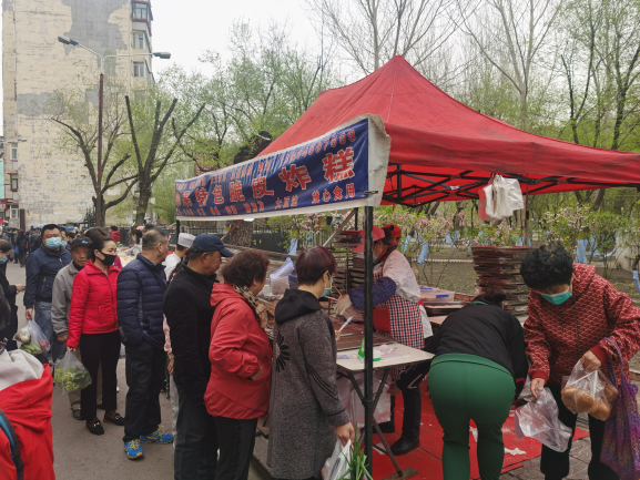 早市的吸引力在于“看”。早市上,各攤主會(huì)想各種各樣的方式招攬顧客,有的會(huì)用廣告牌,有的會(huì)吆喝。早市上的商業(yè)運(yùn)作方式也非常有趣,比如現(xiàn)場(chǎng)擠羊奶,旁邊拴幾頭奶羊,當(dāng)招牌;賣(mài)刀切面的現(xiàn)場(chǎng)切,炸油條的現(xiàn)場(chǎng)炸,都是明檔手工,這幾乎是大多數(shù)早市商家的促銷(xiāo)手段。也有推銷(xiāo)老花鏡的,賣(mài)衣服的,會(huì)現(xiàn)場(chǎng)吆喝“正宗商品專(zhuān)柜,清倉(cāng)促銷(xiāo)”——這大概是現(xiàn)在“直播帶貨”的線下模式。住在早市附近的居民,有的會(huì)在樓上用繩子吊下個(gè)籃子,讓攤主把東西放到籃子里,直接拽上去。