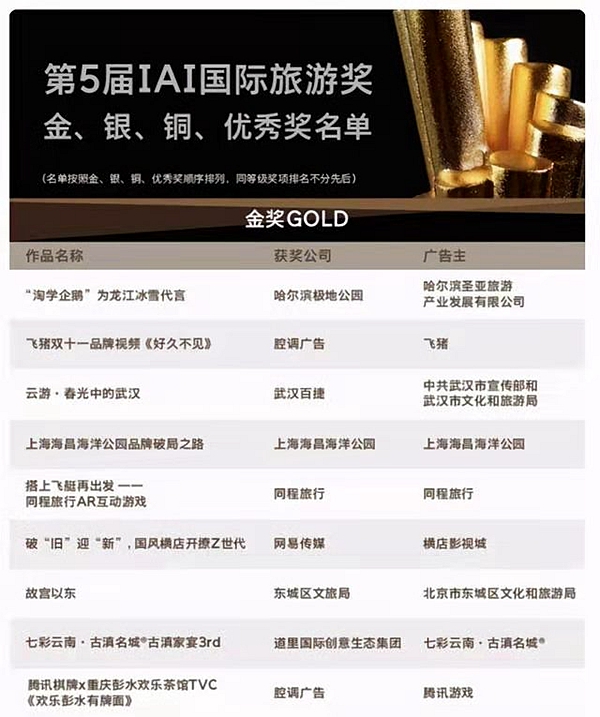 據(jù)了解,IAI國(guó)際旅游獎(jiǎng)是知名的綜合性廣告與品牌營(yíng)銷(xiāo)賽事評(píng)選,是國(guó)際化的旅游營(yíng)銷(xiāo)及行業(yè)運(yùn)營(yíng)評(píng)選活動(dòng)。國(guó)內(nèi)眾多營(yíng)銷(xiāo)及廣告類(lèi)重量級(jí)機(jī)構(gòu)參與角逐,此次組委會(huì)共收到779家公司報(bào)送的3083件作品及案例,由270多位來(lái)自各領(lǐng)域的專(zhuān)家組成的終審團(tuán)進(jìn)行評(píng)審。