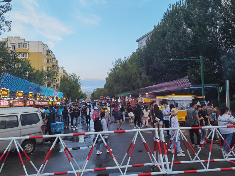 龍頭新聞訊(記者 張同)20日下午,哈爾濱下了一場小雨。17時許,雨剛停,家住哈西的李女士便乘上地鐵,來到老太平區(qū)的民強大街?!鞍胄r橫穿城市東西,只為品嘗一下這里的小吃?!崩钆康耐槎噙_(dá)7人,都是奔著“新網(wǎng)紅打卡地”來的。