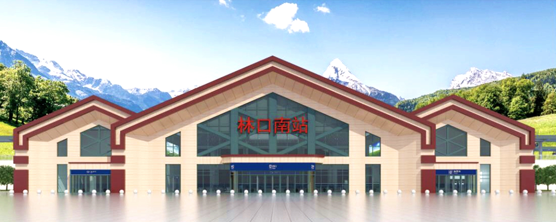 林口南站建筑面積2998.19平方米,可容納800旅客候車。設(shè)2條正線,2條到發(fā)線,站房外觀設(shè)計(jì)如同“林中木屋”,融入林口縣特有的“山水神秀”文化底蘊(yùn),給人以厚重堅(jiān)實(shí)之感,并將英雄之城的紅色文化融入其中,象征城市精神如山巒屹立。兩側(cè)較小體塊烘托中部門式造型,窗格構(gòu)件相互交織,如森林霧凇,體現(xiàn)寒冷地區(qū)建筑特質(zhì),具有雪原建筑意向。車站穩(wěn)重大氣、簡(jiǎn)潔壯麗,通過現(xiàn)代建筑語言詮釋了站房的人文之靈,彰顯現(xiàn)代交通建筑特征。