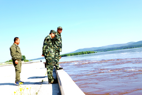 阿木爾林業(yè)局黨委書(shū)記胡守慶(右三)深入興安鎮(zhèn)口岸查看汛情情況