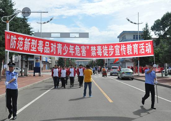 呼中區(qū)禁毒委組織禁毒成員單位,開展以“防范新型毒品對青少年的危害”為主題的禁毒徒步宣傳活動(dòng)