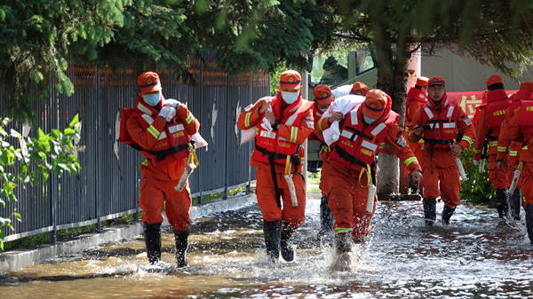 18日凌晨,記者在位于塔河鎮(zhèn)中央大街東端的塔河農(nóng)商銀行機關(guān)辦公樓前看到,漲勢很快的洪水正迅猛地漫過中央大街,向街邊的農(nóng)商銀行機關(guān)大樓、稅務(wù)局辦公樓和電視臺辦公樓等處涌來,而這幾個沿街單位地勢較低,很容易受到洪水的侵襲。為盡量控制洪水水勢,最大限度減少洪水造成的損失,塔河縣防指迅速調(diào)集人力物力,主要領(lǐng)導(dǎo)靠前指揮,廣大救援官兵奮勇爭先,在幾個臨街單位外圍用沙袋圍壩攔堵,并調(diào)動多臺高壓水泵抽水抗?jié)?,給幾個單位的救援提供了極大地助力,也為其自救創(chuàng)造了更多的時機。