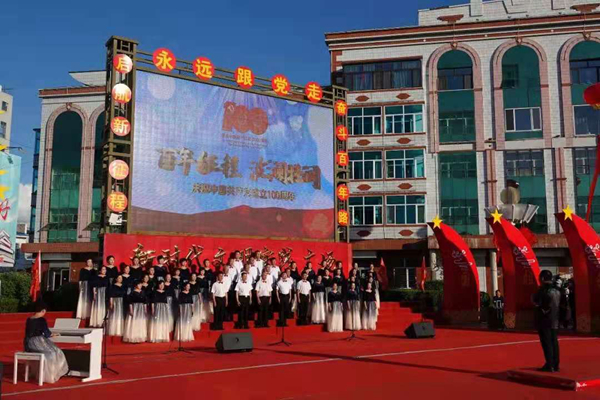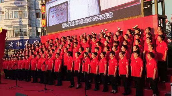 在歌聲中重溫百年歷程,追尋紅色記憶;在歌聲中砥礪無悔初心,汲取奮進(jìn)力量。塔河縣廣大職工群眾在縣新時代文明實踐廣場以大合唱的方式縱情高歌,用滿腔的熱忱唱出了對黨的熱愛,對偉大祖國的贊美。由塔河縣森林之聲合唱團(tuán)表演的曲目《祖國頌》《我愛你中國》拉開了演出的序幕,瞬間就調(diào)動了人們的情緒,激發(fā)了人們的愛國豪情。《不忘初心》《走向復(fù)興》《強(qiáng)軍戰(zhàn)歌》《忠誠于黨》等一首首經(jīng)典曲目表達(dá)了塔河兒女對黨的忠誠與熱愛,展現(xiàn)了塔河人奮發(fā)有為、積極向上的良好精神風(fēng)貌。