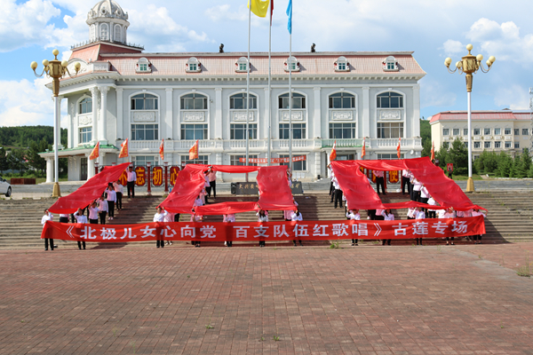 開(kāi)展“高歌頌黨恩 永遠(yuǎn)跟黨走”唱紅歌活動(dòng)。在生產(chǎn)一線(xiàn)、機(jī)關(guān)科室的400多名黨員干部、職工群眾用百米長(zhǎng)幅歌頌黨、感謝黨,齊聲高唱《沒(méi)有共產(chǎn)黨就沒(méi)有新中國(guó)》《歌唱祖國(guó)》,激情嘹亮的歌聲唱出了對(duì)中國(guó)共產(chǎn)黨的熱愛(ài)和禮贊。全體隊(duì)員還用黨旗和紅綢擺出了100的造型,以特殊的方式向建黨100周年獻(xiàn)禮,充分展現(xiàn)了新時(shí)代林區(qū)礦山人愛(ài)黨愛(ài)國(guó)的精神風(fēng)貌。