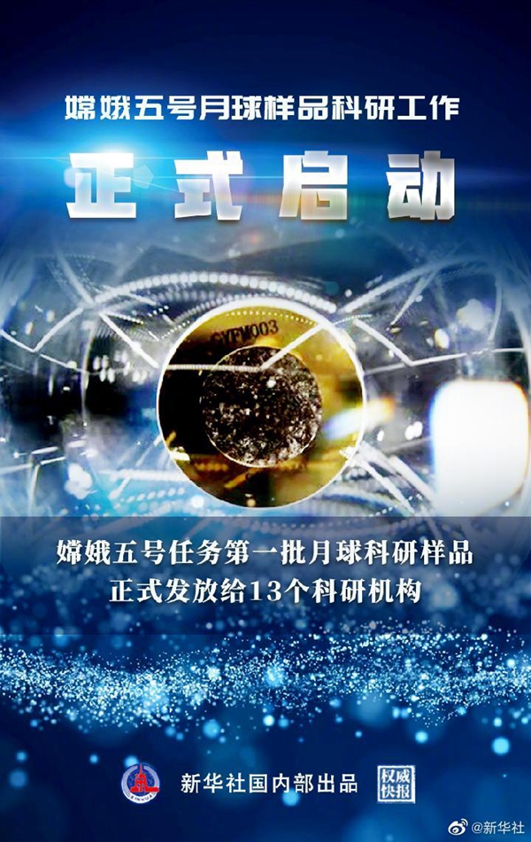 剛剛,國家航天局探月與航天工程中心在京舉行嫦娥五號任務(wù)第一批月球科研樣品發(fā)放儀式,標志著月球樣品科學研究工作正式啟動。經(jīng)審核,來自13所科研機構(gòu)的31份申請獲得通過。(新華社記者 胡喆 海報設(shè)計 苗夏陽)