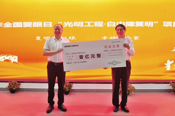 今年愛眼日“光明工程·白內(nèi)障復(fù)明”項目座談會上,愛爾眼科通過愛眼公益基金會捐贈1億元助力鄉(xiāng)村振興