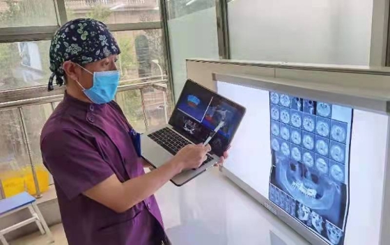 依托于“口腔北斗系統(tǒng)”新技術(shù),劉鑫教授團隊在數(shù)字化口腔種植領(lǐng)域精耕細作,迄今已圓滿完成了上百例數(shù)字化種植牙手術(shù)。與傳統(tǒng)“自由手”口腔種植技術(shù)相比,數(shù)字化口腔種植手術(shù)更加安全、精準、微創(chuàng)、高效、舒適。同時,個性化的手術(shù)設(shè)計方案借助數(shù)字化的直觀、立體形式呈現(xiàn)在患者面前,便于醫(yī)患間直接面對面交流,既提升了種植手術(shù)的精確度和成功率,又節(jié)約了手術(shù)時間,減少了手術(shù)創(chuàng)傷,降低了術(shù)后并發(fā)癥。