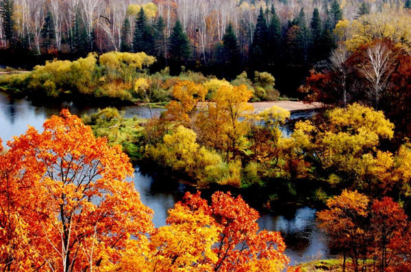 落木千山天遠大,澄江一道月分明。在伊春,山與水,日與月、樹與葉,相互輝映,完美融合。