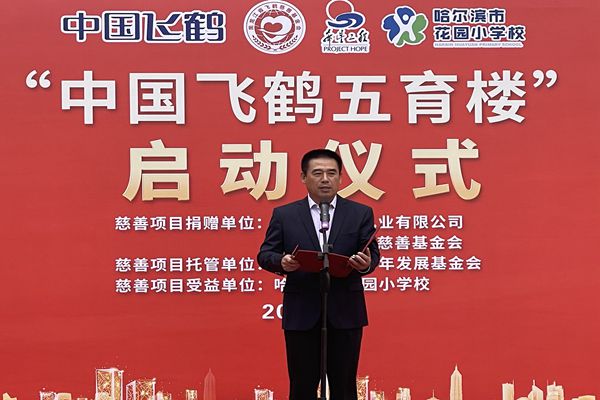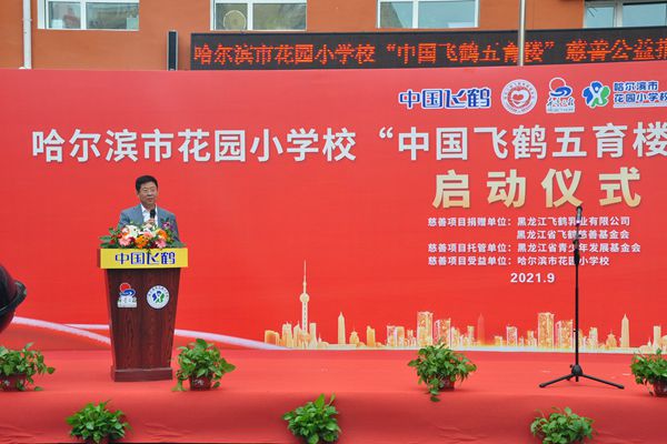 飛鶴乳業(yè)黨委書記、飛鶴慈善基金會理事長朱天龍在啟動儀式上說,在中秋國慶即將到來之際,我們滿懷喜悅的心情,在百年名校哈爾濱市花園小學(xué)校舉行“中國飛鶴五育樓”公益慈善助教項(xiàng)目啟動儀式,這是飛鶴乳業(yè)履行社會責(zé)任、情系教育事業(yè)的又一項(xiàng)助教工程。在黑龍江省貫徹落實(shí)黨中央“雙減”政策,深入推進(jìn)五育并舉,促進(jìn)學(xué)生德智體美勞全面發(fā)展的重要時期。飛鶴向哈爾濱市花園小學(xué)捐贈625萬元,用于花園小學(xué)“五育樓”項(xiàng)目改造,這是一項(xiàng)利在當(dāng)代,功在千秋的公益慈善助教項(xiàng)目,旨在更好地優(yōu)化我省基礎(chǔ)教育教師學(xué)習(xí)培訓(xùn)環(huán)境,為花園小學(xué)教學(xué)提供更好的辦學(xué)條件,也是助力黑龍江省基礎(chǔ)教育的改革。省教育廳副廳長姜同河、團(tuán)省委副書記張濤對飛鶴乳業(yè)的慈善助教善舉給予充分的肯定和贊許。花園小學(xué)校長曹永鳴代表學(xué)校的孩子們向飛鶴乳業(yè)的慈善捐助表達(dá)深深的謝意!