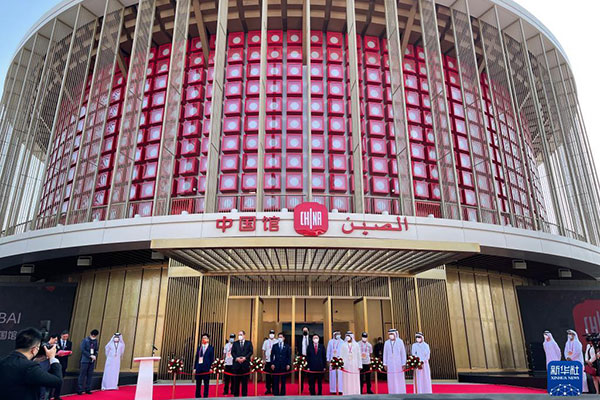 這是10月1日在阿拉伯聯(lián)合酋長(zhǎng)國(guó)迪拜拍攝的迪拜世博會(huì)中國(guó)館開(kāi)館儀式現(xiàn)場(chǎng)。新華社記者 蘇小坡 攝