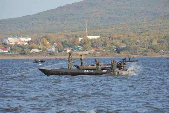 △烏蘇里江中作業(yè)的漁民