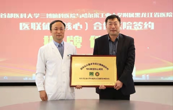 黑龍江經(jīng)濟(jì)網(wǎng)訊(林穎 董宇翔 梁新立) 10月19日,黑龍江省醫(yī)院與首都醫(yī)科大學(xué)三博腦科醫(yī)院結(jié)成醫(yī)聯(lián)體簽約揭牌儀式在北京舉行。今后雙方將在遠(yuǎn)程會(huì)診、技術(shù)指導(dǎo)與支持、人才培養(yǎng)和資源共享等多方面開(kāi)展緊密合作,攜手共進(jìn),優(yōu)勢(shì)互補(bǔ),共同提高在神經(jīng)科學(xué)領(lǐng)域臨床、科研及教學(xué)水平,提升醫(yī)療服務(wù)能力,切實(shí)為黑龍江省及周邊地區(qū)百姓提供優(yōu)質(zhì)的醫(yī)療衛(wèi)生服務(wù)。