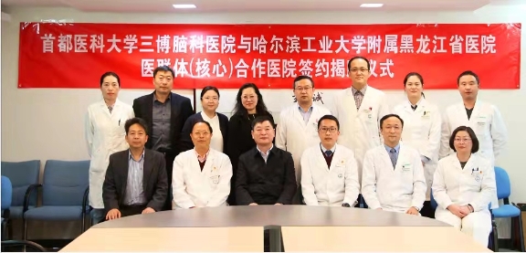 黑龍江省醫(yī)院黨委書(shū)記劉宏石、副院長(zhǎng)陳鵬,首都醫(yī)科大學(xué)三博腦科醫(yī)院院長(zhǎng)徐向英、黨委書(shū)記王保國(guó)、副院長(zhǎng)張宏偉等領(lǐng)導(dǎo)出席,并為牌匾揭牌。黑龍江省醫(yī)院神經(jīng)外二科程化坤主任、護(hù)理部冷菲菲主任及三博腦科醫(yī)院相關(guān)科室負(fù)責(zé)人等參加了本次簽約揭牌儀式。