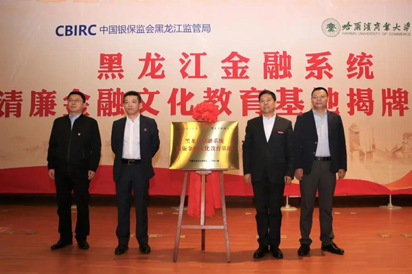 隨后,中國銀保監(jiān)會黑龍江監(jiān)管局黨委書記、局長王柱,哈商大黨委書記孫先民共同為黑龍江金融系統(tǒng)清廉金融文化教育基地揭牌,標(biāo)志著黑龍江金融系統(tǒng)首個清廉金融文化教育基地的正式成立,清廉金融文化進(jìn)校園活動正式啟動。