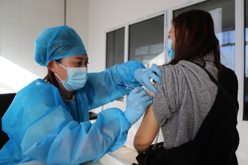 圖為阿木爾林業(yè)局職工群眾正在打第三劑加強(qiáng)針疫苗(王力/攝)
