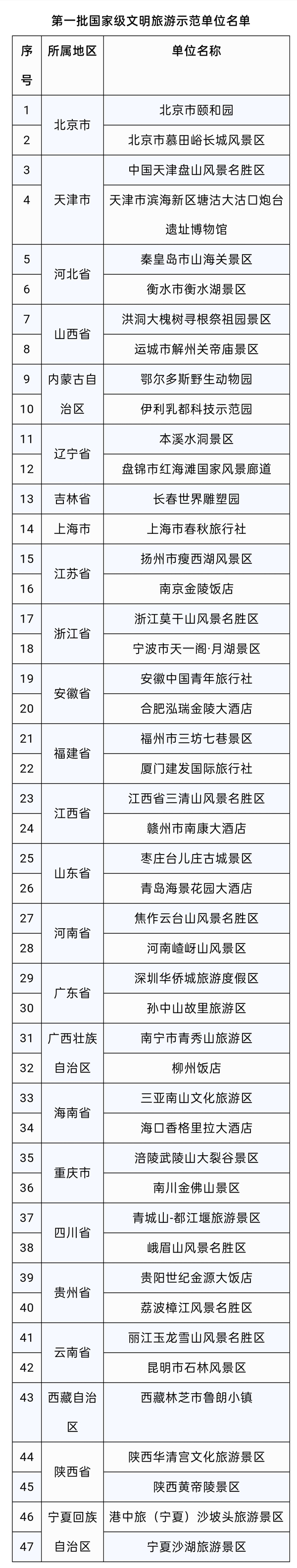 新華網(wǎng)訊(記者 余俊杰)記者18日從文化和旅游部獲悉,經(jīng)自愿申報(bào)、省級(jí)文化和旅游行政部門(mén)審查推薦、全國(guó)旅游標(biāo)準(zhǔn)化技術(shù)委員會(huì)最終評(píng)定后,認(rèn)定北京市頤和園等47家單位達(dá)到國(guó)家級(jí)文明旅游示范單位標(biāo)準(zhǔn)。