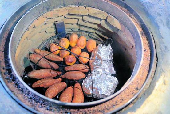 坑烤,顧名思義就是將食物放入坑內(nèi)烤熟,是大慶的地方特色美食,也是一代人質(zhì)樸的美食記憶??涌境鰜淼奈寤ㄈ猓獗斫顾?,入口煙香縈舌,脂油洇出,極為解饞,坑烤之后的雞鴨,多了份淡淡的松木味、鄉(xiāng)野味,坑烤后的鵝蛋蛋黃金黃耀眼,蛋青透亮,入口嚼勁十足。