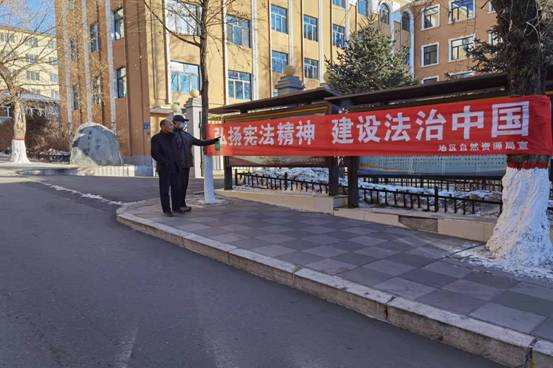 大興安嶺地區(qū)自然資源局在機(jī)關(guān)辦公樓靠近街道的顯著位置懸掛標(biāo)語條幅,組織志愿者來到衛(wèi)東社區(qū)朝陽路東五道街開展“國家憲法日”主題宣傳活動。志愿者向過往群眾和社區(qū)居民發(fā)放了《憲法》《土地管理實(shí)施條例》等法律法規(guī)內(nèi)容摘要,積極宣傳了憲法知識和自然資源政策法規(guī),使法治觀念更加深入人心。
