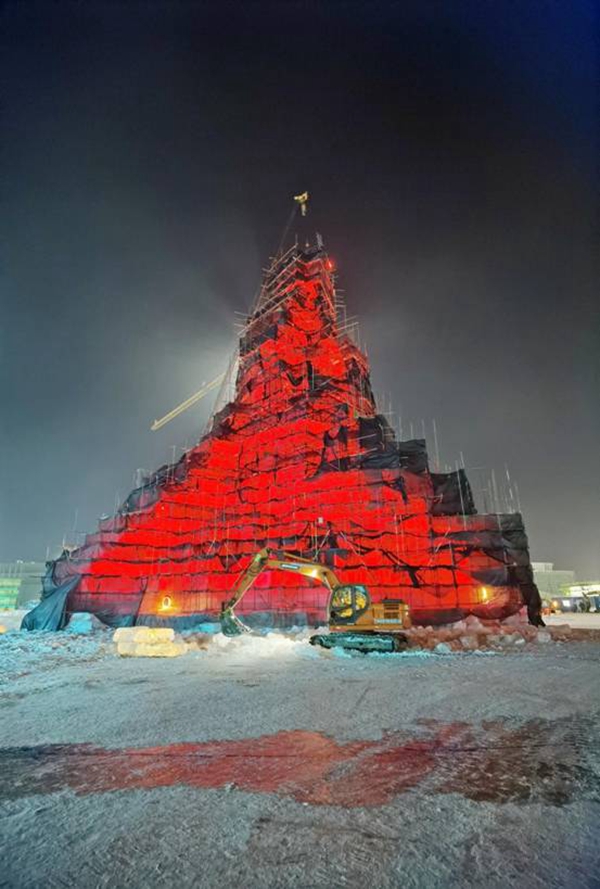 規(guī)模最大的冰景建筑“圣火之巔”完工,標(biāo)志著第二十三屆哈爾濱冰雪大世界開園進(jìn)入了倒計(jì)時階段。園區(qū)內(nèi)其他冰雪景觀正在緊張施工中,一個流光溢彩、炫麗耀眼的冰雪樂園,即將呈現(xiàn)在世人面前。