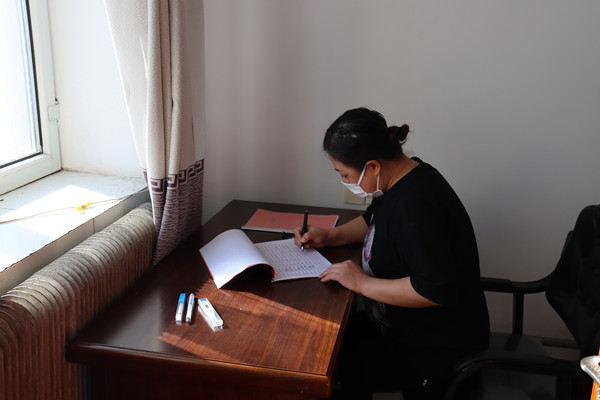 圖為古蓮河露天煤礦疫情防控人員對(duì)來(lái)往客人進(jìn)行登記