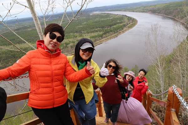 游客深入到阿木爾林業(yè)局銀環(huán)島最佳觀景平臺,飽覽祖國的大美風(fēng)光(王力 攝)