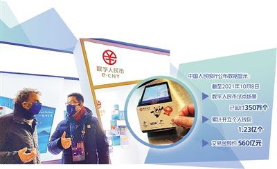 2017年起,人民銀行與商業(yè)銀行、互聯(lián)網(wǎng)公司等合作,共同進(jìn)行數(shù)字人民幣研發(fā)。2019年末,數(shù)字人民幣開始試點(diǎn),目前,人民銀行已經(jīng)在深圳、蘇州、雄安、成都、上海、海南、長沙、西安、青島、大連等地和2022年北京冬奧會場景開展數(shù)字人民幣試點(diǎn)。中國人民銀行公布的數(shù)據(jù)顯示,截至2021年10月8日,數(shù)字人民幣試點(diǎn)場景已超過350萬個,累計(jì)開立個人錢包1.23億個,交易金額約560億元。