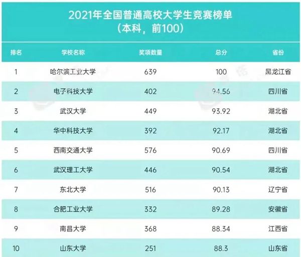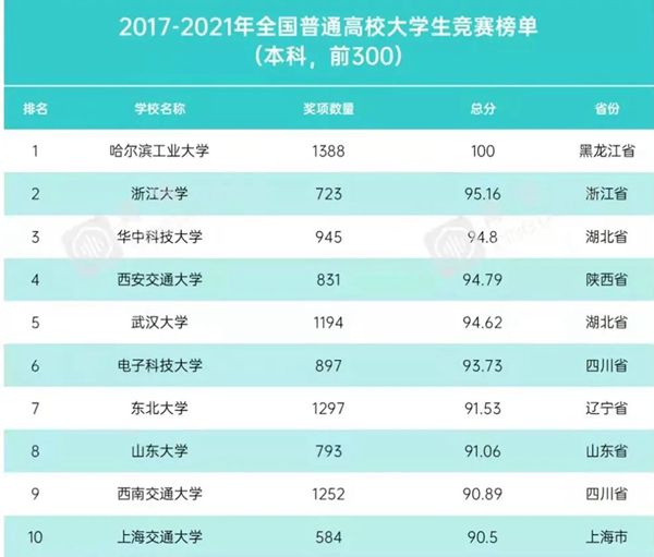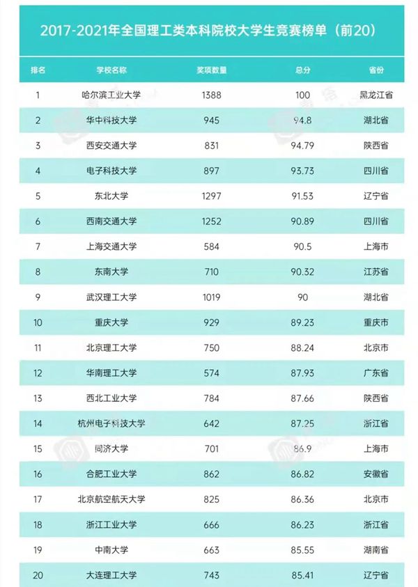 黑龍江經(jīng)濟(jì)網(wǎng)訊(黑龍江日?qǐng)?bào)全媒體見(jiàn)習(xí)記者董廣碩 商祺)近日,中國(guó)高等教育學(xué)會(huì)高校競(jìng)賽評(píng)估與管理體系研究工作組發(fā)布2021全國(guó)普通高校大學(xué)生競(jìng)賽分析報(bào)告,全國(guó)共有1197所本科院校進(jìn)入2017—2021年本科榜單。哈爾濱工業(yè)大學(xué)以獲獎(jiǎng)數(shù)量1388項(xiàng)、總分100分獲得2017—2021年全國(guó)普通高校大學(xué)生競(jìng)賽榜單榜首,以獲獎(jiǎng)數(shù)量639項(xiàng)、總分100分獲得2021年全國(guó)普通高校大學(xué)生競(jìng)賽榜單榜首。這是哈爾濱工業(yè)大學(xué)連續(xù)3次獲得上述榜單冠軍。