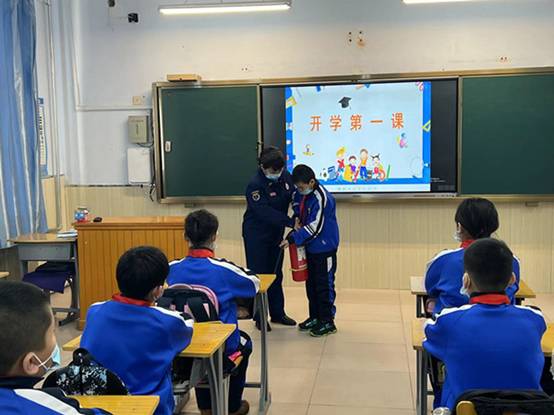 呼瑪縣消防救援大隊宣講人員在為學生講解滅火器的使用常識(吳喜杰 攝)