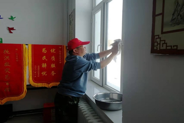 活動中,志愿者們分兵兩路,一路手持掃帚、鐵锨,對場區(qū)周邊垃圾、雜物、冰雪進行清理,另一路志愿者們手持掃帚、抹布、墩布等清潔用具紛紛投入到室內(nèi)衛(wèi)生清潔服務(wù)活動,大家從屋頂?shù)降孛妗淖烂娴酱蹭?、從餐廳到洗漱間來了一次全方位無死角的大掃除,利用一個上午的時間,還原了一個干凈整潔的辦公生活環(huán)境。
