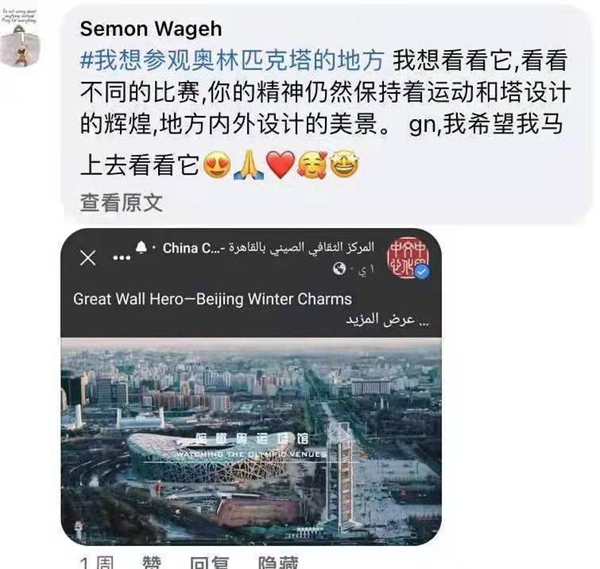 2022年年初,根據(jù)埃及社會(huì)、文化特點(diǎn)和民眾喜好,開(kāi)羅中國(guó)文化中心創(chuàng)新推出了2022“北方冰雪旅游海外推廣季”之“我最想去的地方”線上評(píng)選活動(dòng),邀請(qǐng)埃及各界友人參與話題互動(dòng),在中心主題帖文下寫出自己最想去的中國(guó)省份(或城市)及原因,曬出旅游目的地圖片并打上話題標(biāo)簽等。活動(dòng)一經(jīng)推出,即受到埃及民眾的廣泛關(guān)注,網(wǎng)友們紛紛在中心臉書帖文下留言并轉(zhuǎn)發(fā),評(píng)選自己“最想去的中國(guó)冰雪旅游勝地”,并熱情附上自己之前在華留學(xué)、訪問(wèn)、旅游、生活的旅游體驗(yàn)和文化閱歷,活動(dòng)二次外溢效應(yīng)明顯,二次傳播效果良好,旅游推廣和文化傳播的效果遠(yuǎn)遠(yuǎn)高于預(yù)期?;顒?dòng)期間,該活動(dòng)