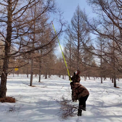 嚴格技術(shù)操作,科學采集枝條。按照《大興安嶺森林培育技術(shù)規(guī)范》中的“標準枝法”采集。生產(chǎn)人員深入到種子園優(yōu)良林分中,以興安落葉松林地域內(nèi)優(yōu)質(zhì)目標樹為宜,分別對樹的陰陽兩面和林相的南北面進行采集枝條,按照樹的上、中、下和南北隨機抽取10—15株優(yōu)樹,每株各采兩組枝條,每株樹采集六個枝條,枝條長度為1.5米以上,對采集枝條陽上、陽中、陽下,陰上、陰中、陰下方位分別用標簽標記,進行捆扎,并記錄好林班、小班、林齡和坐標點。