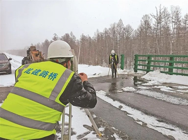 嘉湯公路起于伊春市嘉蔭口岸、止于湯旺縣,路線全長(zhǎng)94.286公里,設(shè)計(jì)時(shí)速80公里,按照雙向四車(chē)道一級(jí)公路技術(shù)標(biāo)準(zhǔn)進(jìn)行改擴(kuò)建。由于公路地處高寒地區(qū),原公路涉及長(zhǎng)距離的多年凍土路段,多處凍土深度達(dá)到20多米,直至巖層?!盀榱丝朔鐾谅范魏笃谌诔?,我們采取了兩個(gè)辦法。針對(duì)不太深的凍土層,先挖除凍土,后續(xù)再換填砂礫或片石處理,沉降一年后再進(jìn)行路面施工;針對(duì)凍土層較深的路段,我們采取‘以橋代路’方式跨越凍土帶?!眹?guó)道嘉蔭至湯旺河段公路改擴(kuò)建工程建設(shè)指揮部副指揮馮昌龍介紹說(shuō)。
