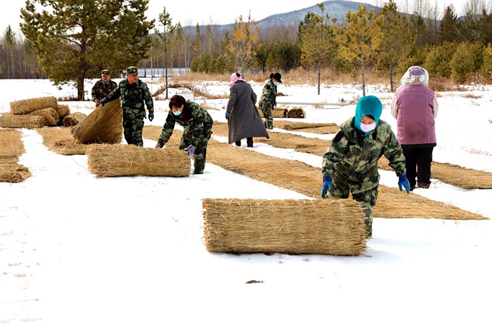 一年之計在于春。林業(yè)局中心苗圃針對興安落葉松、樟子松、西伯利亞紅松新播苗因受凍拔影響,導(dǎo)致苗木根部留露地面而枯死的實際問題,組織機(jī)關(guān)工作人員利用周末兩天時間,以義務(wù)獻(xiàn)工,對180萬余株苗木鋪蓋草簾子近5000延長米。