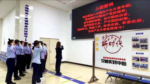 重溫入團誓詞,匯聚青春力量。為進一步引導(dǎo)廣大團員青年厚植愛國、愛黨、愛稅收事業(yè)的深厚情感,進一步增強團支部的組織力量,安達市稅務(wù)局團支部開展重溫入團誓詞活動,在莊嚴的團歌聲中,11名安達市稅務(wù)局奮戰(zhàn)在稅收一線的團員干部在團支部書記的帶領(lǐng)下,面向誓詞莊嚴宣誓。宣誓完畢后,安達稅務(wù)青年紛紛表示,將立足本職、埋頭苦干,用一流的業(yè)務(wù)能力為納稅人繳費人帶來一流的納稅服務(wù)體驗,為安達稅收事業(yè)奉獻青春力量。