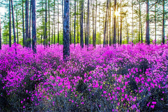 據(jù)了解,每年四月末、五月初杜鵑花都會(huì)如期綻放,因?yàn)榻衲隁鉁剌^低興安杜鵑盛開(kāi)的周期較往年延后,5月中旬達(dá)到盛花期,花期可持續(xù)一周左右。