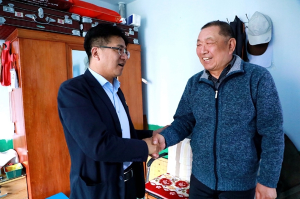 在今年75歲的老干部尹遜言家中,王立昆握住尹遜言的手高興地說:“我代表局黨委、林業(yè)局來看您來了?!币痪錅嘏脑捳Z,頓時讓尹遜言特別感動。王立昆強(qiáng)調(diào),全局要在政治上關(guān)心、生活上照顧、精神上關(guān)懷老黨員、老干部,解決難事,多辦實(shí)事,在全局營造尊重、愛護(hù)、學(xué)習(xí)老黨員、老干部的良好氛圍。