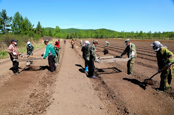 阿木爾林業(yè)局中心苗圃搶抓春播有利時機(jī),直播落葉松(王力 攝)