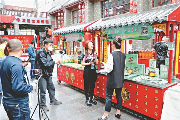 東興城商業(yè)步行街網(wǎng)絡(luò)直播促消費(fèi)活動(dòng)。 宋洋攝