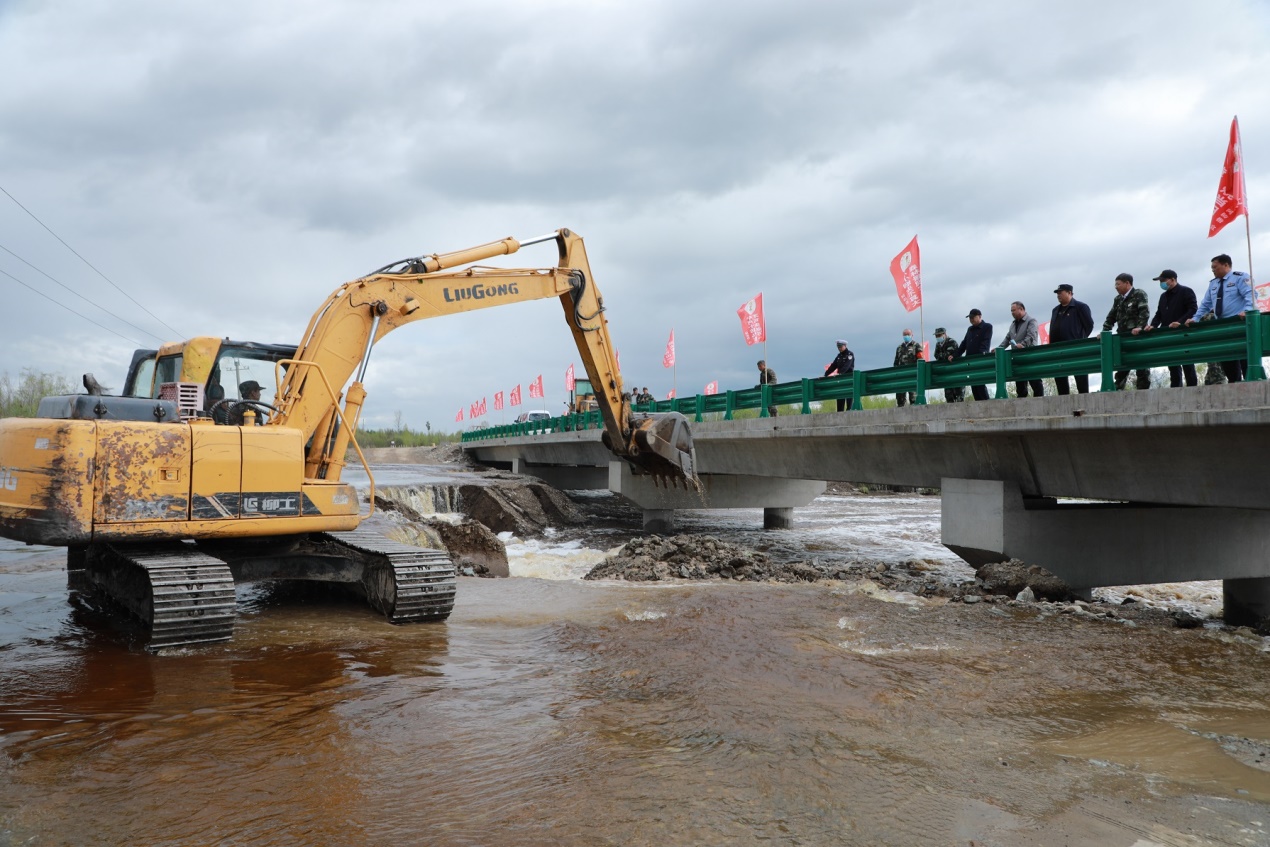 阿木爾林業(yè)局對楚龍溝大橋進行泄洪,確保國道G111交通安全。王力 攝