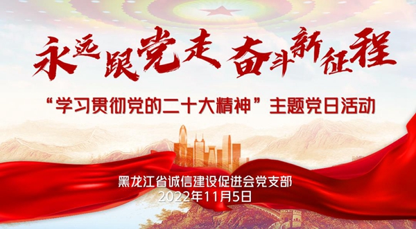 黑龍江經(jīng)濟網(wǎng)訊(劉懷宇 記者崔冰)為認真學習宣傳貫徹黨的二十大精神,落實《中共黑龍江省委關(guān)于認真學習宣傳貫徹黨的二十大精神 奮力譜寫全面建設(shè)社會主義現(xiàn)代化國家龍江新篇章的決定》,迅速掀起學習貫徹黨的二十大精神的熱潮,黑龍江省誠信建設(shè)促進會黨支部于11月5日下午,在線上開展以“學習貫徹黨的二十大精神”為主題的黨日活動。