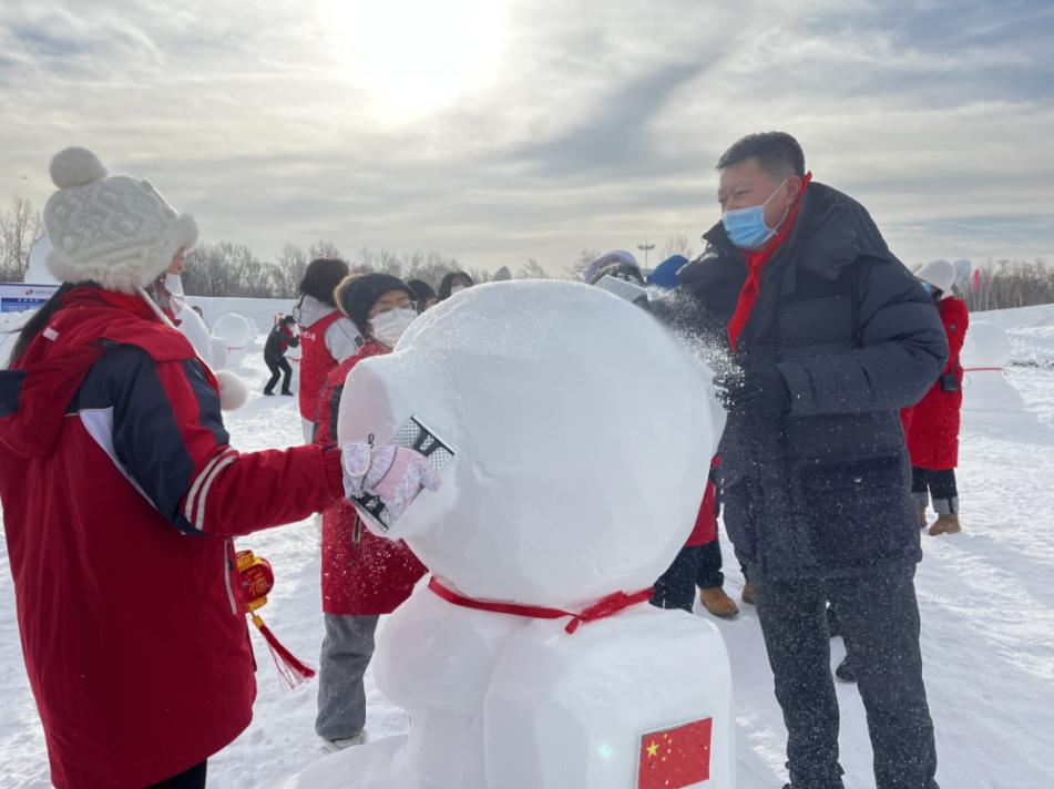 嘉賓們還與留守兒童們暢游雪博會,開啟了冰雪之旅。他們一同欣賞獨具匠心的壯麗雪雕,用心感受這座城市的冰雪文化,手拉手暢玩在零下十幾度的冰天雪地,為留守兒童們留下屬于這個冬天最珍貴的美好回憶。在雕刻指導(dǎo)教練的耐心講解中,共青團(tuán)省委副書記夏天和留守兒童們共同完成了蘊含著特殊意義的“宇航員”雪雕,它將承載著希望與愛迎接2023年的春暖花開。
