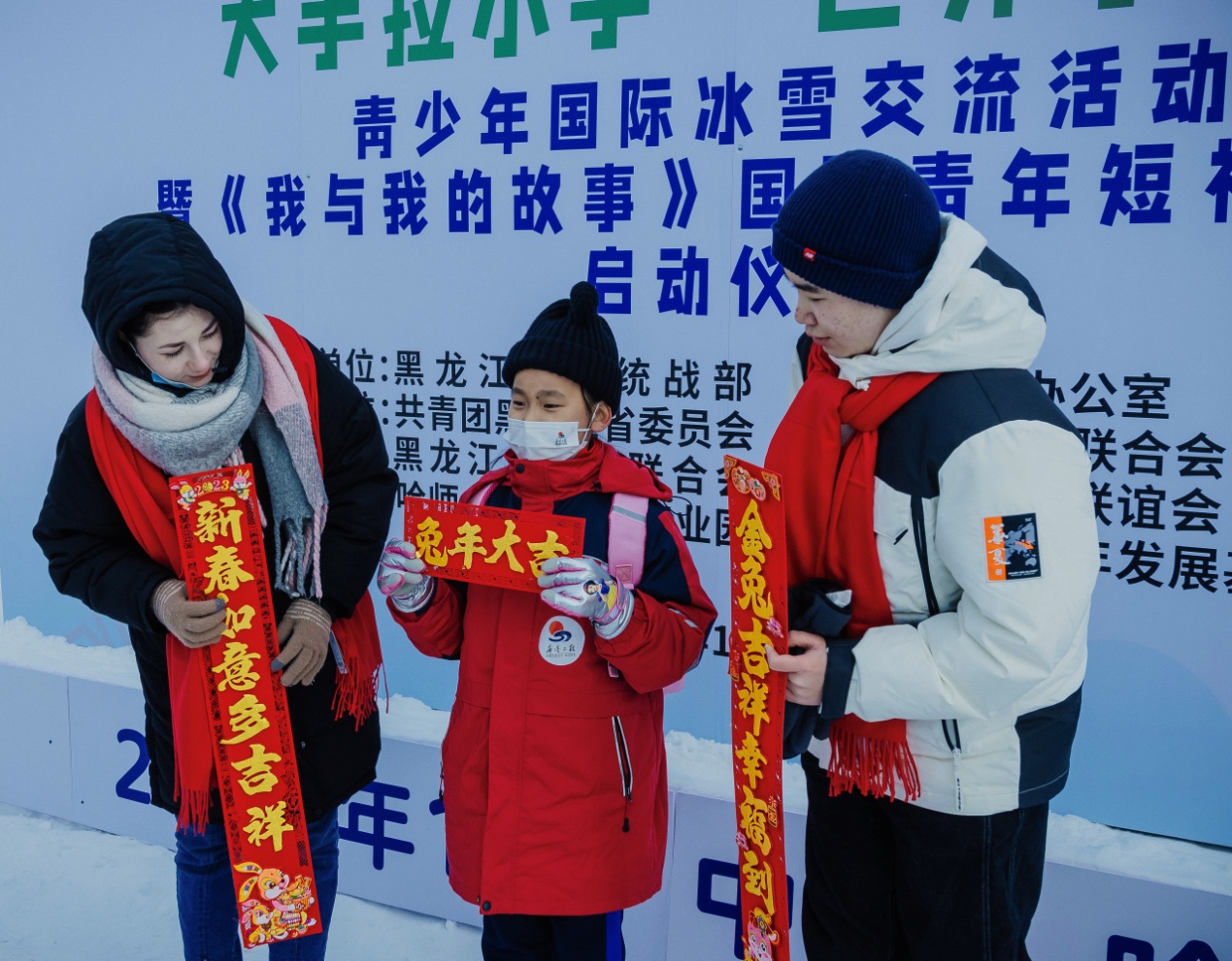 當(dāng)天上午,在雪博會(huì),來自黑龍江大學(xué)的各國(guó)留學(xué)生代表與中國(guó)青少年結(jié)對(duì)互動(dòng),互贈(zèng)新春禮物,表達(dá)對(duì)即將迎來的兔年美好祝福。中外青少年小手拉大手,共游太陽島雪博會(huì),鯉魚躍龍門、圓夢(mèng)啟程、雪冠博覽等雪雕雪景讓大家流連忘返。世界各國(guó)青少年一起雕刻“宇航員”雪雕,送上春聯(lián)祝福語,體驗(yàn)了中國(guó)傳統(tǒng)文化和濃濃的年味,表達(dá)了對(duì)世界文化共融的美好祝愿。